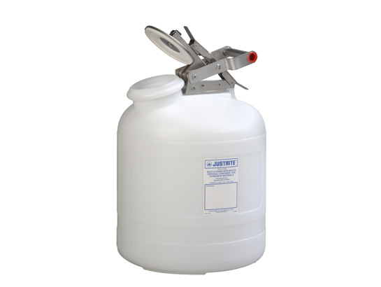 自動關(guān)閉式腐蝕性廢物罐由半透明、高密度的聚乙烯制成,經(jīng)專門設(shè)計,耐酸堿腐蝕。7.5升至19升尺寸的罐在手柄處設(shè)有固定裝置,使蓋子能夠保持敞開。彈簧閉合帽提供嚴密的密封。罐口無消焰器,可快速傾倒非易燃腐蝕性液體。橢圓形的罐體上設(shè)有扳柄,可實現(xiàn)單手傾倒,并使罐的容量得到最大程度的利用。