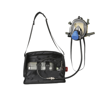 產(chǎn)品組成:逃生呼吸器由碳纖維瓶、減壓閥、供氣閥、面罩、帶表氣瓶閥、阻燃背包等組成。