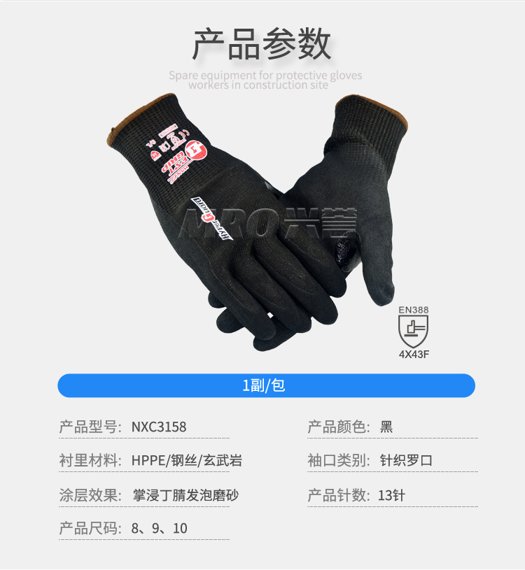 產(chǎn)品名稱:恒輝NXC3158Q丁腈發(fā)泡磨砂防切割手套