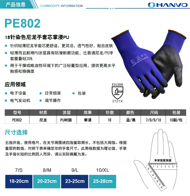 產(chǎn)品名稱:恒輝PE802 PU涂層手套