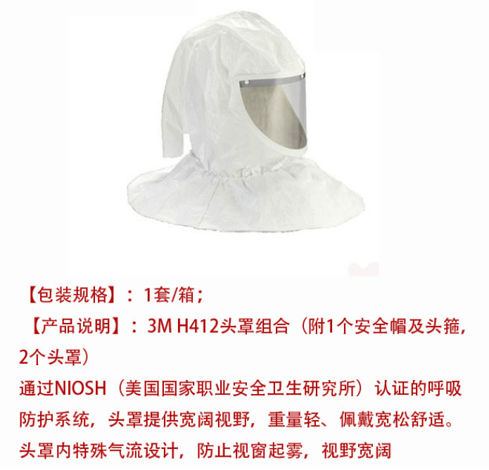 ●3M H 412頭罩組合,附1個(gè)安全帽及頭箍,2個(gè)頭罩;