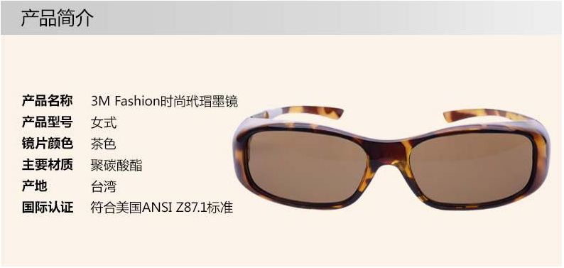 產(chǎn)品名稱:3M Fashion時尚玳瑁墨鏡