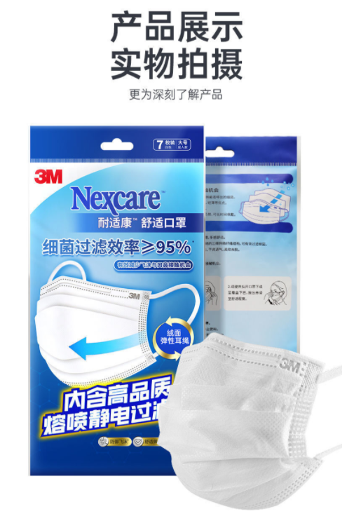 產品名稱:3M耐適康7660+平面舒適口罩大號白色