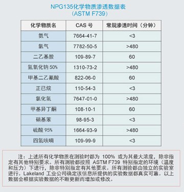 ●Lakeland NPG134 防護(hù)服可對(duì)低微化學(xué)液體的噴濺起防護(hù)作用;